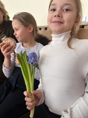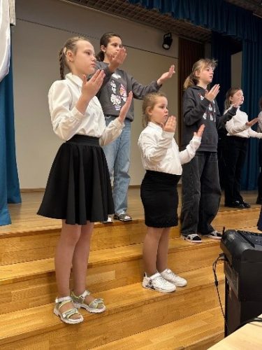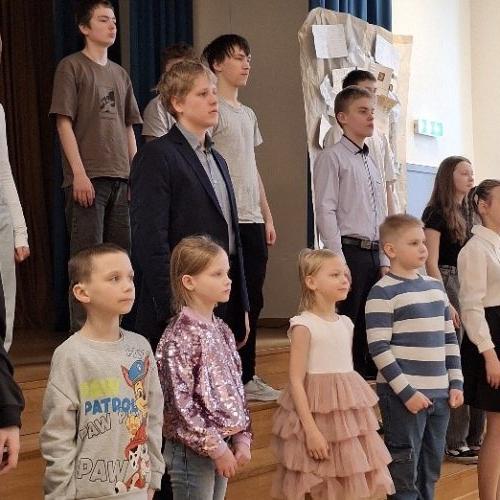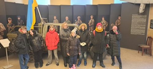 24. februārī apritēja četri gadi kopš Krievijas pilna mēroga iebrukuma Ukrainā. Šajā dienā mūsu skolā – absolventes Melisas un skolotājas Lienes “VELTĪJUMS UKRAINAI” – Halinas Vdovičenko pasaka “Mākoņu puzlis” ukraiņu bērniem zīmju valodā. Pasakā bērnu ticība labajam, ticība uzvarai. Arī Kara muzeja izstādē “Bērna prātā” – bērnu sapņi, bērnu kara laika pieredze.