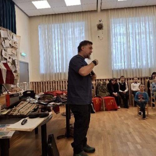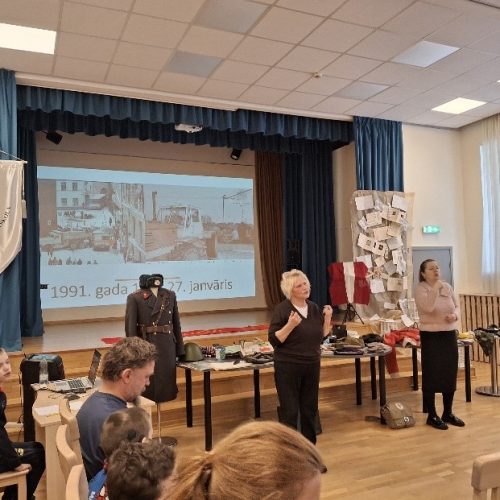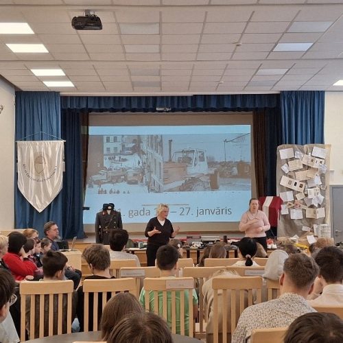 Šogad janvārī apritēja 35 gadi, kopš 1991. gada janvāra barikādēm. Skolas dzimšanas dienas ietvaros, aicinājām āra dzīves apmācību centra PELĒKAIS VILKS vadītāju Nilu Klints ar nodarbību “Barikāžu laiks 1991. gads – Jaunieša stāsts”. Nils dalījās ar savu pieredzi barikāžu laika notikumos, to papildināja prezentācija un bagātīga dažādu tā laika priekšmetu kolekcija – telefoni, radio aparāti, pārtikas iepakojumi, apģērbi u.c. Daudziem bija pārsteigums, ka Nila mamma ir mūsu skolas skolotāja Oksana Klints. Arī skolotāja Oksana dalījās ar tā laika atmiņām, kurās bija rūpes, uztraukums par sava dēla un citu jauniešu drošību, par cilvēku pienākuma sajūtu pret savu zemi, vienotību ar pārējiem barikāžu laika dalībniekiem. Paldies par pārliecību, ticību un apņēmību nosargāt brīvību un Latviju visiem 1991. gada barikāžu laika dalībniekiem!