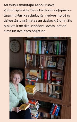 Skolas abās ēkās uz ekrāniem iespēja ieskatīties akcijas “Mans grāmatplaukts” kopsavilkumā. Arī mēs – Rīgas Ēbelmuižas pamatskolas skolēni, skolotāji – piedalījāmies Latvijas Nacionālās bibliotēkas rīkotajā vēsturiskajā akcijā “Mans grāmatplaukts”, kas veltīta Latviešu grāmatniecības piecsimtgadei.