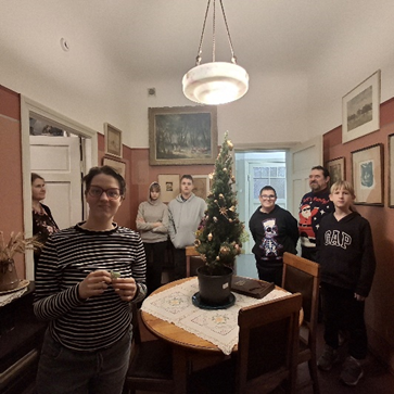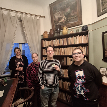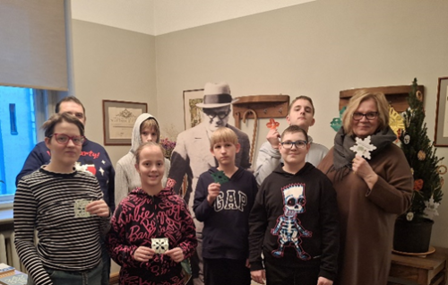 11.decembra pēcpusdienā skolas muzejnieki devās apciemot savus draugus dzejnieka Aleksandra Čaka muzejā, uzzināt – kas jauns muzejā. Muzejs bija Ziemassvētku rotā, vairākās telpās pušķotas eglītes. Emīlu ļoti ieinteresēja eglīšu rotājumi, kuri bija pagatavoti no salmiem. Muzeja darbiniece Solvita pastāstīja par laiku, kad šeit Lāčplēša ielas namā dzīvoja dzejnieks A. Čaks. Ieva un Andris muzejā bija pirmo reizi. Aplūkojām mākslinieces Ilgneses Avotiņas izstādi “Retro”. 2020. gadā māksliniece saņēmusi Aleksandra Čaka piemiņas nozīmīti par čakisku līdzdomāšanu un jaunradi. Atvadoties, katrs saņēmām pa skaistai sniegpārsliņai no Ziemassvētku pārsliņu darināšanas darbnīcas, ko vadījusi māksliniece I.Avotiņa.